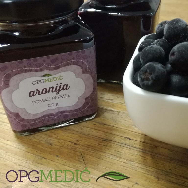 Aronija domaći pekmezSvi poznati slatkiši imaju svoju domovinu – zemlju ili kraj gdje su nastali, gdje su ime dobili i odakle su krenuli na svoj dugi i slatki put u svijet. Nastavši negdje širom svijeta, sa svojim čudnim imenima, stigle su razne poslastice i u naše krajeve, do nas.Tako smo od Turaka dobili: halvu, baklavu, gurabije, kadaif, pekmez , rahat-lokum, sutlijaš, tufahije i sl. Iz Njemačke nam stigoše: buhtle, knedle, krafne, nokle, perece, kuglof i tašci. Iz Francuske doputovaše: bomboni, biskviti, žele i marmelada. Iz Engleske: keks, puding i džem. Iz Rusije: piroške i pirog. Iz Španjolske – karamele. Iz Italije – piškote i patišpanja. Iz Mađarske – palačinke. Iz Meksika – čokolada i kakao.Često i nije lako utvrditi što u jezicima iz kojih smo ih preuzeli znače svi ovi nazivi za razne delicije.Neki, oni najzanimljiviji, ipak se mogu odgonetnuti. Tako npr. sutlijaš znači doslovno “ mliječno jelo ” ili “ jelo od mlijeka ”, kod nas se još naziva “ riža na mlijeku ”. Tufahije su Turci preuzeli od Arapa, a na arapskom tufah znači – jabuka. Јasno je onda da se tufahije prave od jabuka, koje se nadjevaju orasima ili bademima i kuhaju u dobro zašećerenoj vodi. Usput, istine radi i riječ šećer smo preuzeli od Turaka, a oni već ranije od Perzijanaca.I riječ marmelada smo preuzeli iz francuskog jezika, u stvari je portugalskog porijekla i znači “ pekmez od dunja ”.Pekmez je naprosto nastao iz potrebe konzerviranja voća za kasniju, zimsku, upotrebu. Nakon mnogo stoljeća, sa svim svojim podvrstama, oblicima i načinima pripreme prerastao je i u istinsku deliciju.Suština pripreme pekmeza je vrlo jednostavna – zrelo i zdravo voće, koje se na neki način usitni, se ukuhava do željene gustoće, uz dodatak šećera ( kažu najviše oko 15 % ukupne mase ) koji služi kao konzervans. Ne škodi dodati i malo limunovog soka kako bismo sačuvali boju voća i spriječili/umanjili oksidaciju.Kasnija upotreba pekmeza ovisi samo o našoj mašti i željama. A mogućnosti su zaista gotovo neograničene i ovise samo o mašti.I to je to. Jednostavno k’o – pekmez!