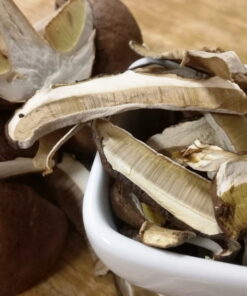 Sušeni vrganji Vrganj (lat. Boletus edulis ) je jestiva gljiva koja obitava u bjelogoričnim i crnogoričnim šumama. Raste na proplancima i na sunčanim obroncima prekrivenima mahovinom, obično u hrastovim, brezovim, bukovim kao i mješovitim šumama do nadmorske visine do oko 1200 m. Nalazi se u Evropi od ljeta do jeseni.Sušeni vrganji Vrganj je jedna od najkvalitetnijih gljiva, visoko cijenjena u kulinarstvu. Poluokruglog šešira svijetlo do tamno smeđe boje, sa debelim bijelim prepoznatljivim repom i prijatnim svježim mirisom mesa. Raste nakon ljetnih kiša, u polukrugu, sakriven ispod lišća ili iglica. Razrezan ne mijenja boju, mada se razne varijacije gljiva iz porodice Boletus odlikuju i tom osobinom.Priprema se svjež, pohan, sušen, ali i ukiseljen sa raznim začinima u ulju.